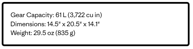 Tote volume is 61 liters