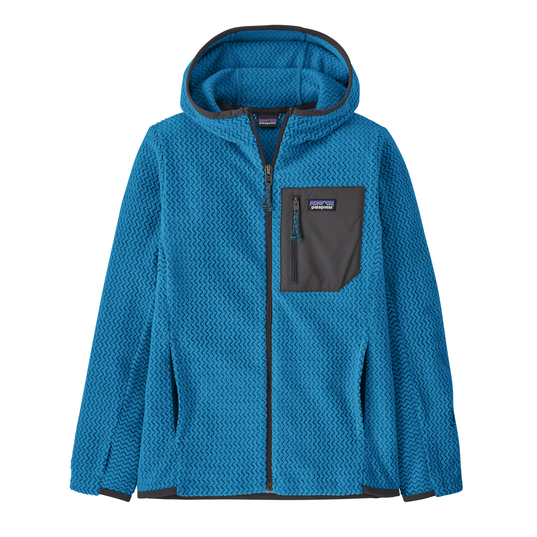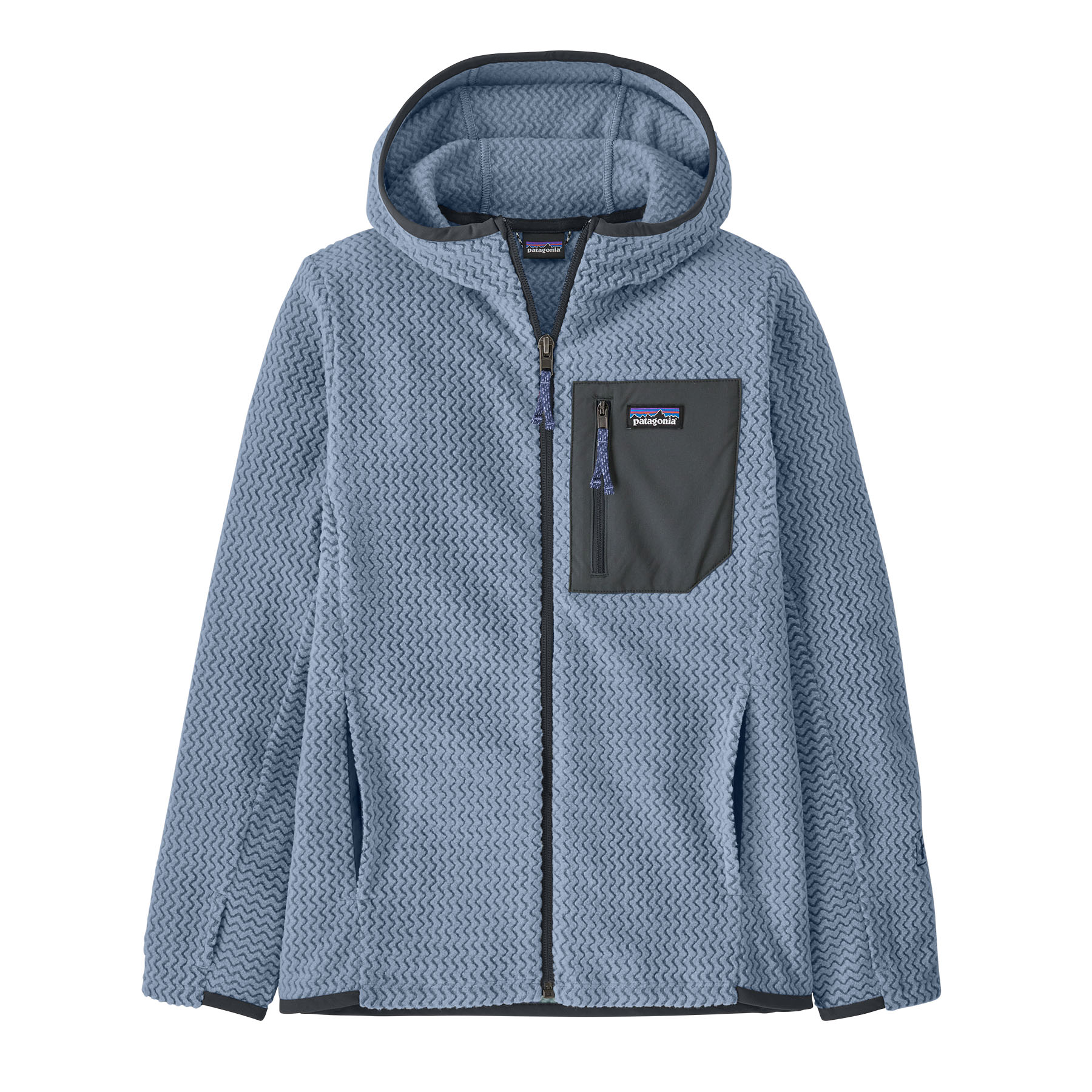 100% recycled polyester jacquard fleece with hollow-core yarns features a unique zigzag texture that wicks moisture, dries fast and is highly breathable for high-output activities