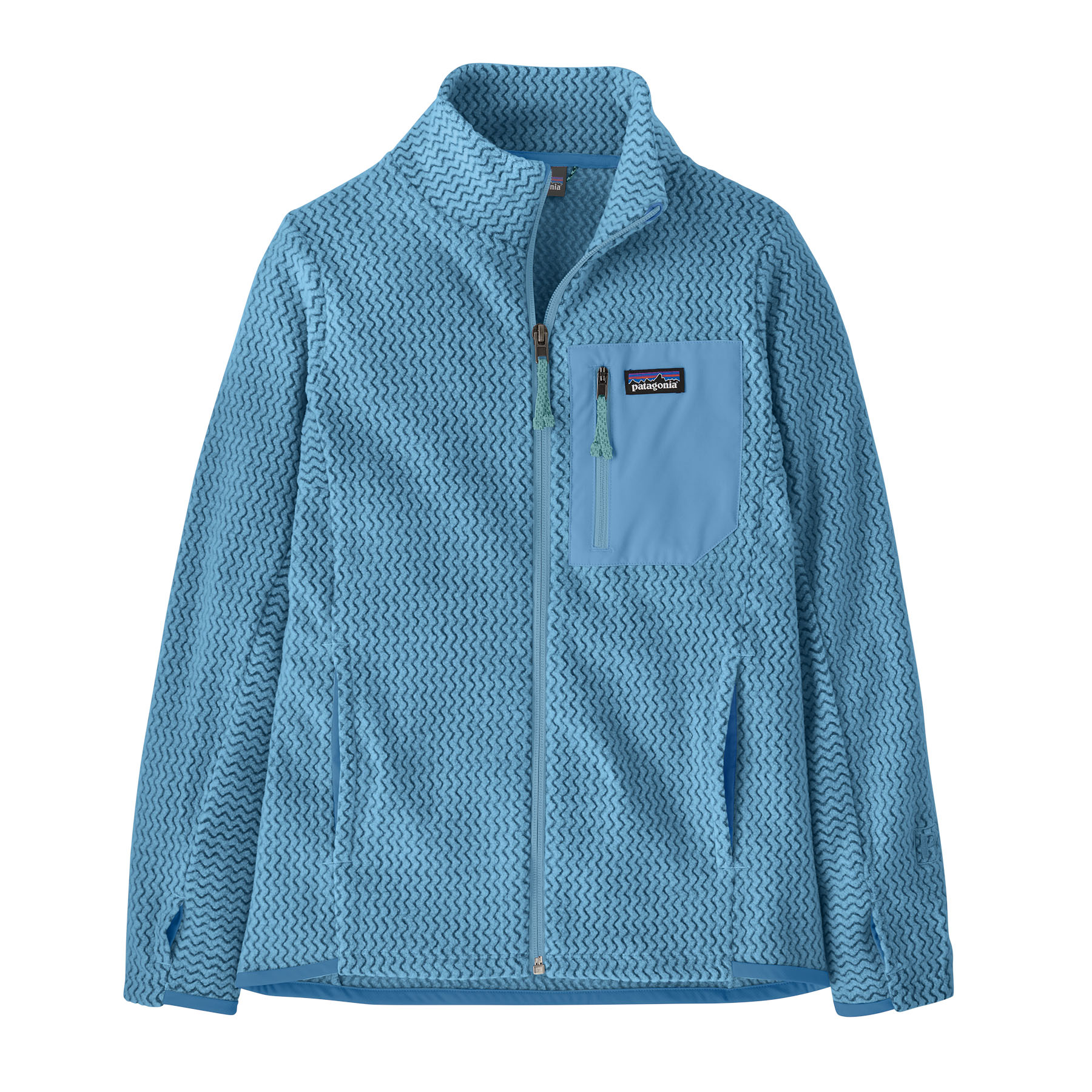 Fabric is made from 100% recycled polyester jacquard fleece with hollow-core yarns and features a unique zigzag texture that wicks moisture, dries fast and is highly breathable for high-output activities - Fit Details