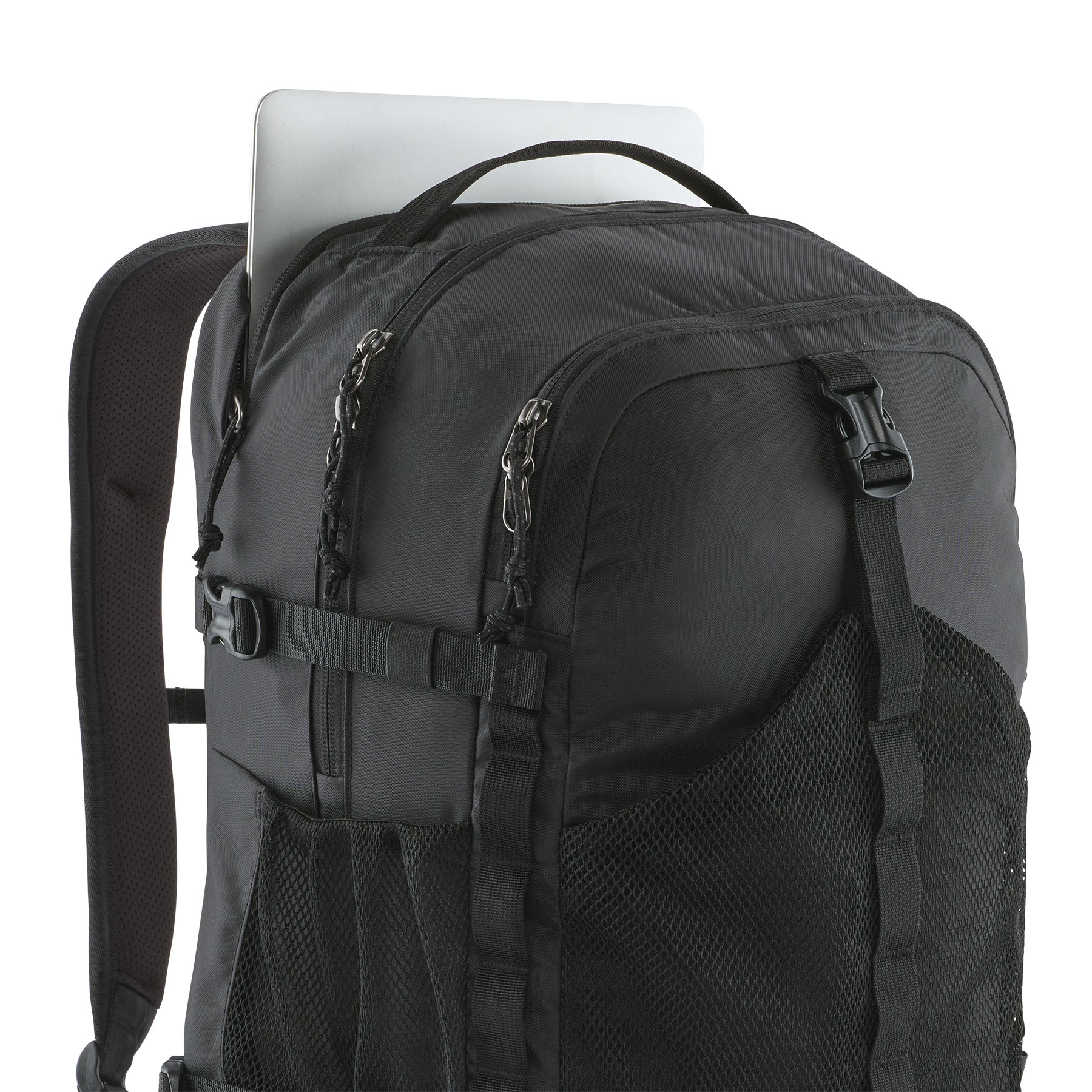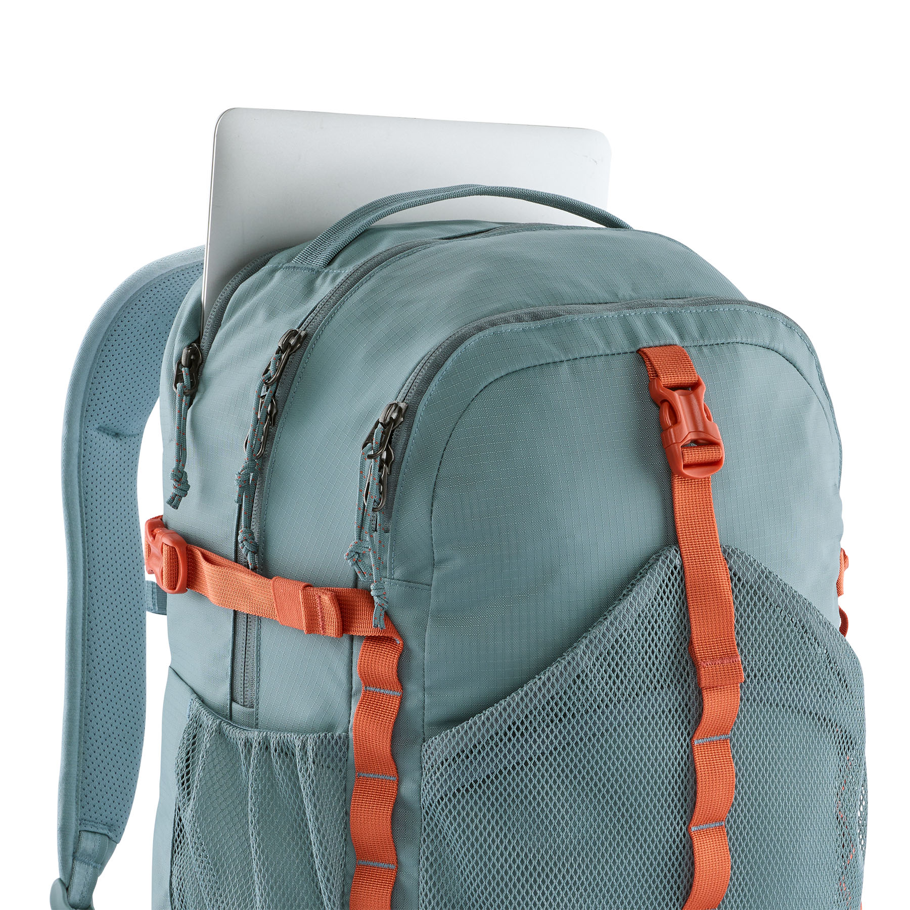 - Back panel & straps: 100% recycled polyester airmesh