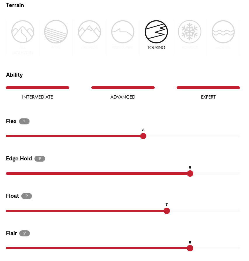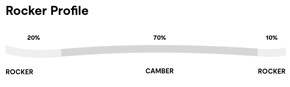 Χρησιμοποιούμε τον εκτεταμένο rocker, έναν αντίστροφο σχήμα καμπύλης στην άκρη και στην ουρά, το οποίο, σε συνδυασμό με το πλάτος της μέσης, είναι το πιο σημαντικό στοιχείο για να παρέχει άνωση σε φρέσκο χιόνι. Ο εκτεταμένος rocker διευκολύνει επίσης την περιστροφή και την εκκίνηση της στροφής και μειώνει τις πιθανότητες να πιαστείς σε άκρη.