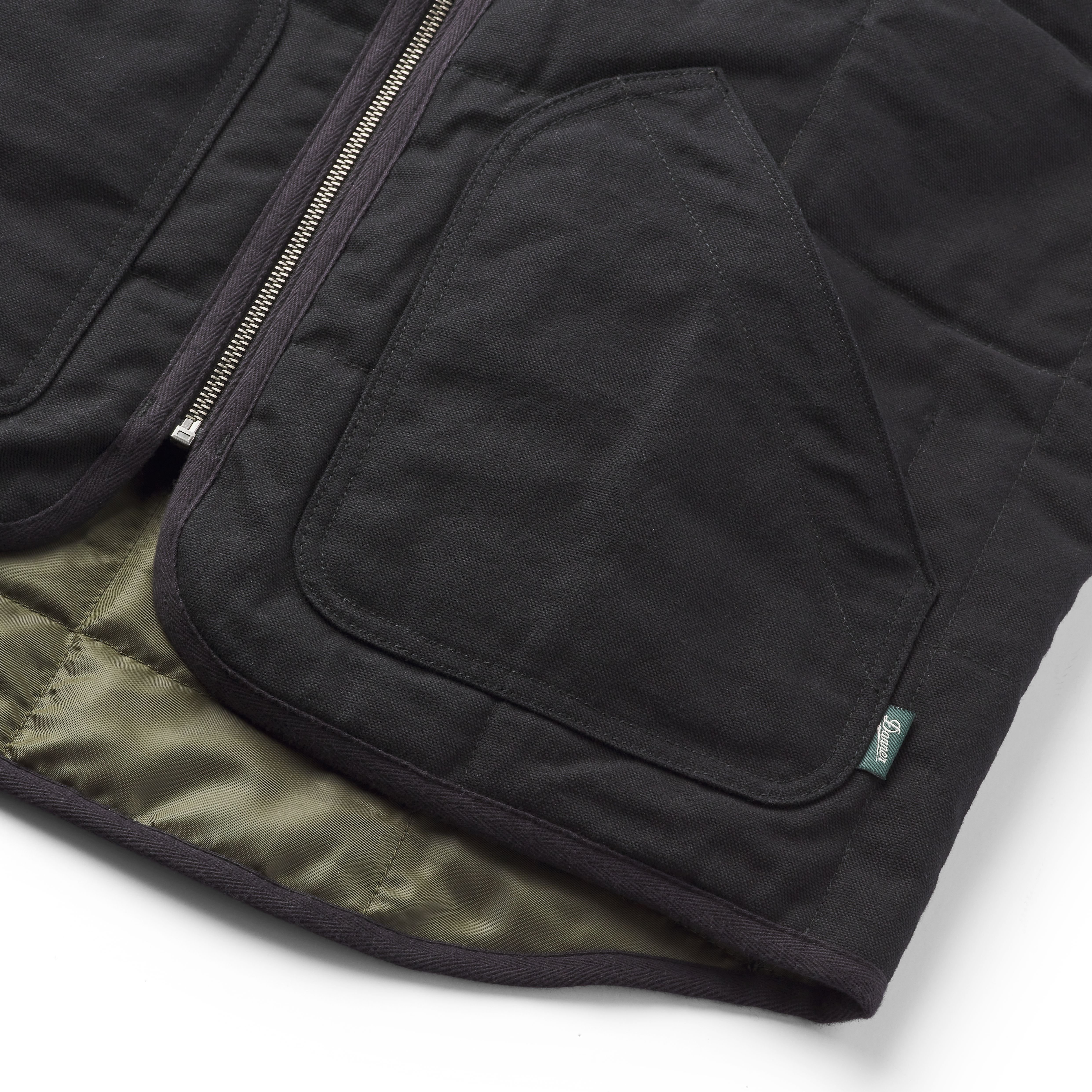 Изключително топла и издръжлива, жилетката е изработена от плат duck canvas (12 унции) с двоен шев, плоски фелд шевове, подсилени входове на джобовете от велур, здрав метален цип Made in USA и хастар от плат pilot twill. Лека и удобна, без излишен обем, тя използва изолация PrimaLoft®, която осигурява надеждна топлина дори при влага.