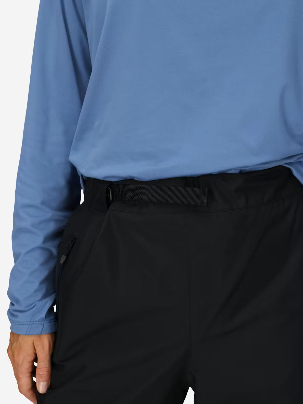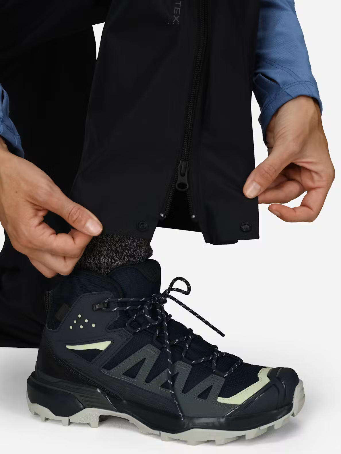 Всичко, от което имаш нужда, без нищо излишно. Тези изключително компактни, готови за път панталони за дъжд са мечта за всеки минималистичен турист, благодарение на 2.5-слойната материя Pertex® Shield Revolve, която е издръжлива, водоустойчива, ветроустойчива и дишаща. Намалената конструкция на шевовете спомага за по-ниско тегло и по-малък обем в раницата, като едновременно повишава комфорта, подвижността и издръжливостта при интензивна употреба в проливен дъжд. Напълно подлепените шевове и покритието C0 DWR осигуряват надеждна защита от пропускане и отблъскване на вода, докато циповете по дължината на ¾ от крачола позволяват лесно и чисто обличане и събличане дори с обувки. Водоустойчивите джобове с цип предлагат удобно място за съхранение в движение, а анатомично оформените колене подпомагат свободното движение и стабилното темпо, дори когато времето е срещу теб.