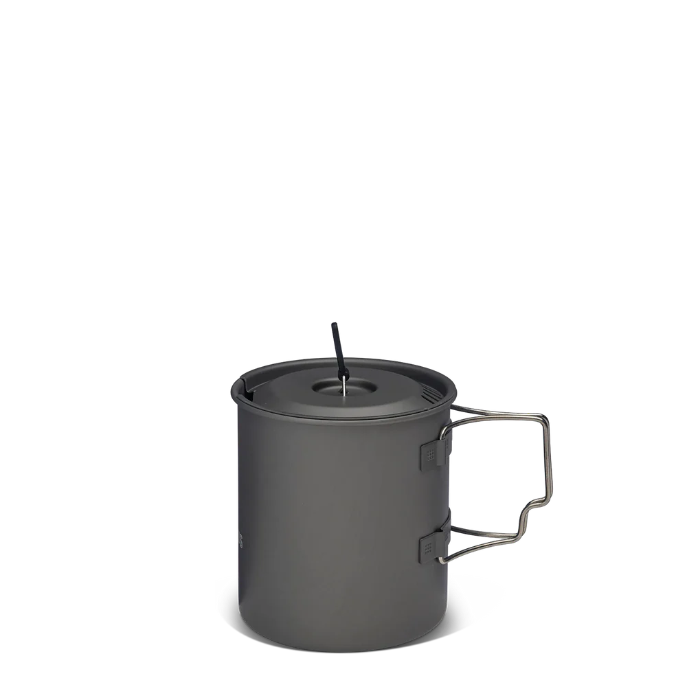 Минималистична и ултралека тенджера от твърдо анодиран алуминий с титаниеви дръжки. Идеална за самостоятелни приключения и олекотено оборудване.